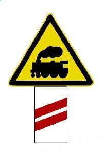 20、这个标志是设置在有人看守的铁路道口,提示驾驶人距有人看守的铁路道口的距离还有100米。