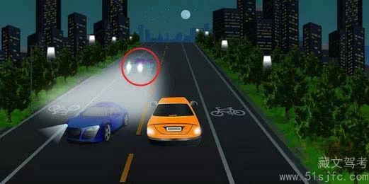 20、夜间驾驶车辆遇自行车对向驶来时,应怎样做?