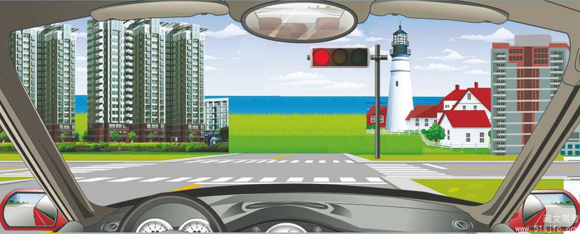 解析:红灯亮表示禁止通行,请停车等待。