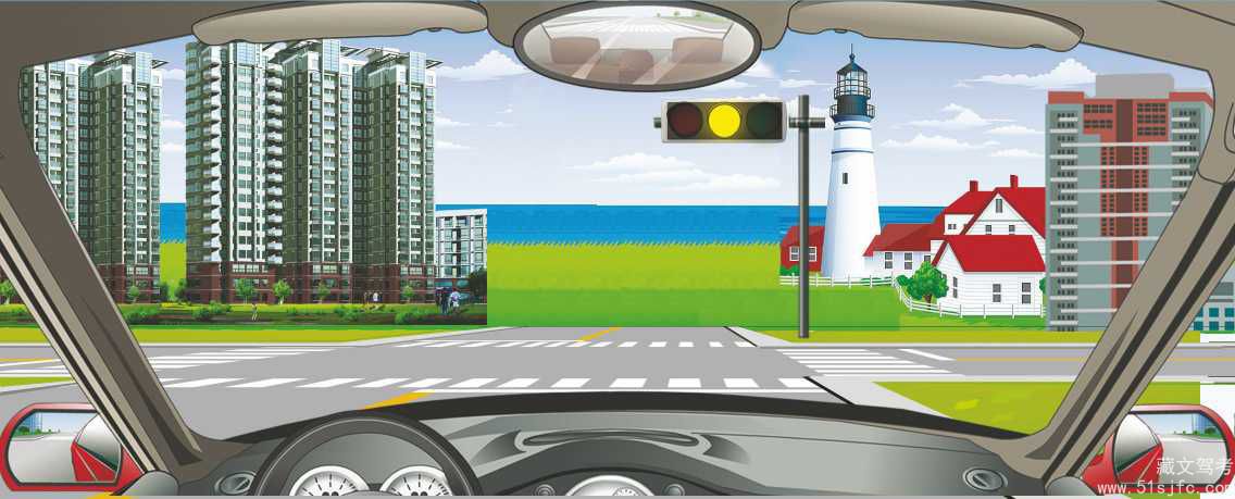 解析:《道路交通安全法实施条例》第三十八条:黄灯亮时,已越过停止线的车辆可以继续通行。