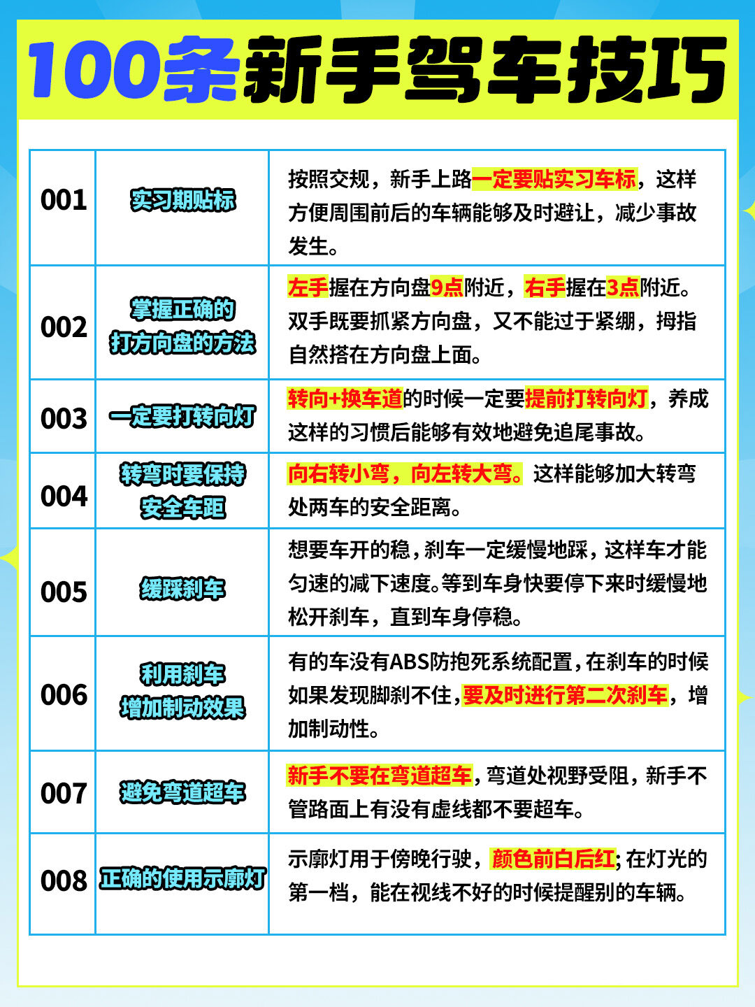 超全开车技巧是准橙考试网为大家收集整理的,老司机绝不轻授的开车技巧宝典。内容涵盖:车上按钮的作用、如何判断车距、如何判断变道时机、侧方停车和倒车入库的小技巧、窄路如何转弯不刮蹭、国内五大常用车牌、100条新手驾车技巧、开车必知电话和小常识。下面为大家整理了一些关于刚学开车的方法技巧,希望作为新手学开车的你能尽快度过“潜在马路杀手”的适应期,成为一名熟练的驾驶员,享受学开车带来的乐趣和便捷!